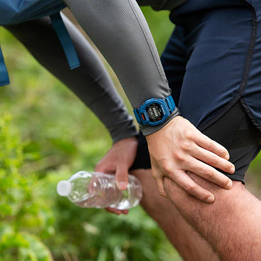 Dale la bienvenida a una gran pasión por los deportes con la línea G-SQUAD de los relojes G-SHOCK. Estos modelos cuentan con un diseño de imagen cuadrada en colores seleccionados para calibrar con los entrenamientos más extremos. Póngase el G-SQUAD más delgado hasta el momento. Las hendiduras laterales del bisel permiten que se asome el color de la carcasa interior, lo cual resalta lo delgado que es este reloj. El botón de luz se ubica en el frente de la carcasa para brindar un acceso práctico y garantizar una lectura fácil durante los entrenamientos nocturnos. Acceda al GPS de su teléfono inteligente mediante Bluetooth para obtener mediciones de acelerómetro de precisión. Toda la información que necesita está al alcance de su mano: distancia, velocidad y ritmo, así como lecturas de vuelta automática para hacer un seguimiento de los tiempos de running para distancias establecidas. La pantalla incluye las calorías quemadas, un contador de pasos, un temporizador de intervalos y un temporizador de vueltas para mantener su ejercicio diario según lo planeado. También utilice la aplicación para verificar los Life Logs y el historial de actividad de su reloj. Gracias a los orificios de ajuste adicionales en la suave correa de uretano, que brindan un ajuste de precisión y calidad, estará listo para disfrutar de una función plena y una comodidad total. Disponible en verde lima, negro o azul marino.